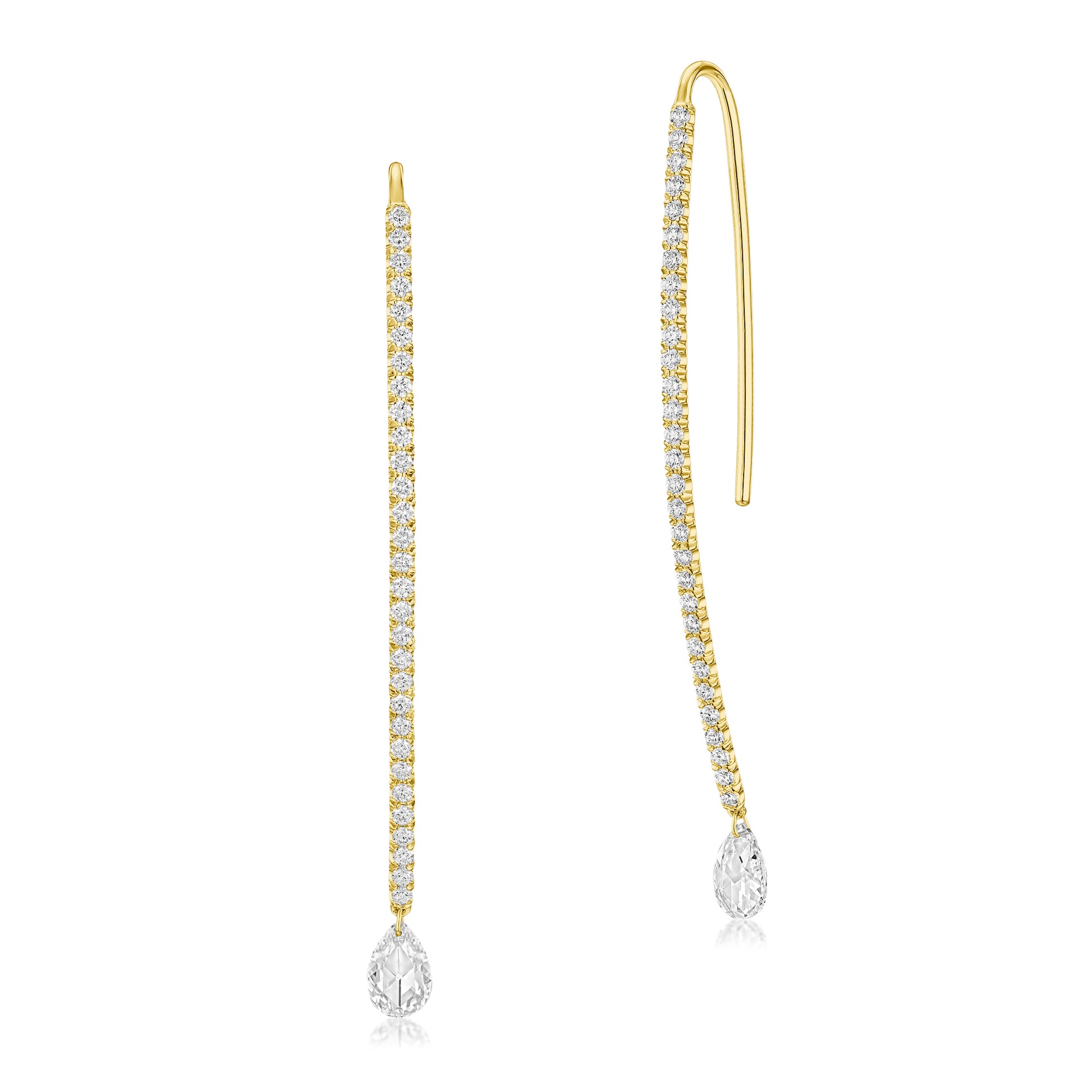 Pear-Shaped Briolette Diamond Dangle Earrings in 18K White Gold